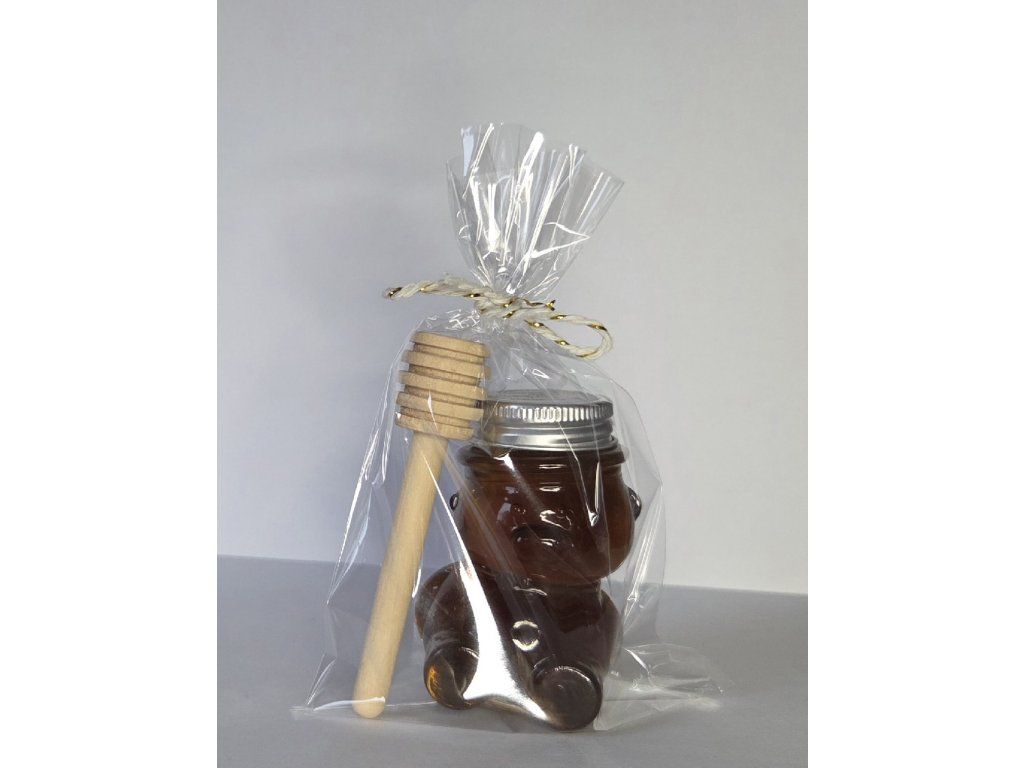 Macíky ponúkame aj v krásnej darčekovej verzii doplnenej o drevenú medovú paličku, ktorá dodá balíčku prirodzený, remeselný dotyk. Perfektný tip na darček pre učiteľov, učiteľky, kolegov či kolegyne, kamarátov, deti či kohokoľvek, kto miluje med.