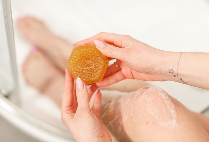 Tiež tretia významná zložka pridáva tomuto mydlu typickú vôňu - je ňou med. Používame ho pri výrobe všetkých mydiel, pretože obsahuje bielkoviny, minerálne látky, vitamíny a enzýmy vhodné na regeneráciu.