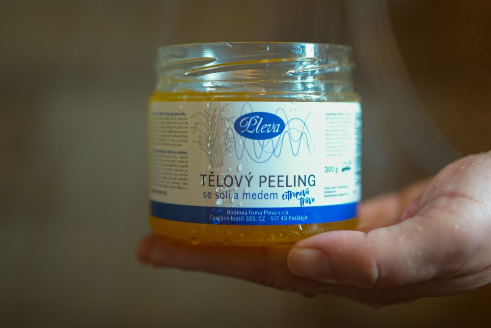 Telový peeling so soľou a medom - citrónová tráva Pleva 300 g